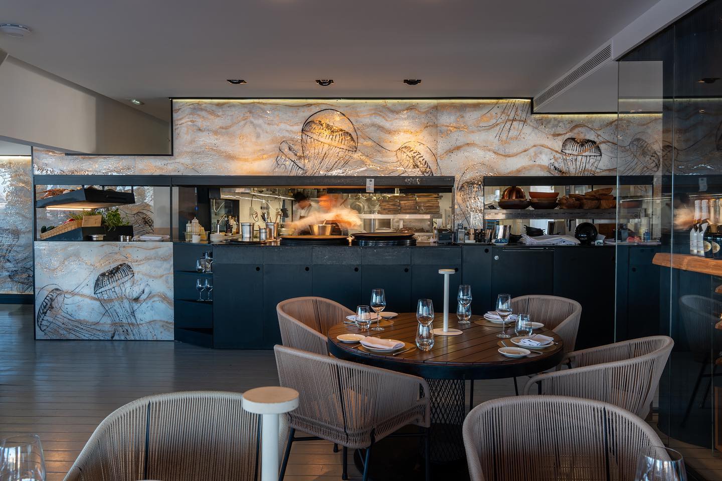 The restaurant serves contemporary Mediterranean cuisine with Italian soul, blending seasonal ingredients with refined creativity. Whether enjoying a romantic dinner or celebrating with friends, every dish is crafted with precision and elegance.