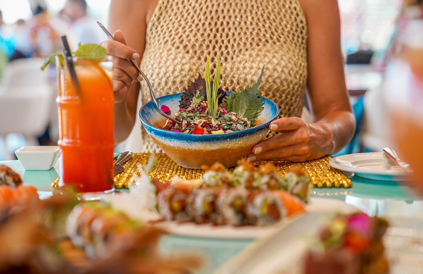 Tanit Beach Ibiza offers an extensive Mediterranean-inspired menu with creative international touches, from fresh seafood and sushi to vegan-friendly dishes. The kitchen focuses on high-quality ingredients and vibrant flavors, making it a culinary hotspot for both daytime beachgoers and evening diners.